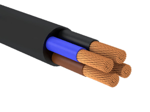 - Кабель NYM: универсальный кабель с медными жилами и ПВХ-изоляцией, предназначен для прокладки в сухих и влажных помещениях, а также на открытом воздухе при условии защиты от прямого солнечного света.