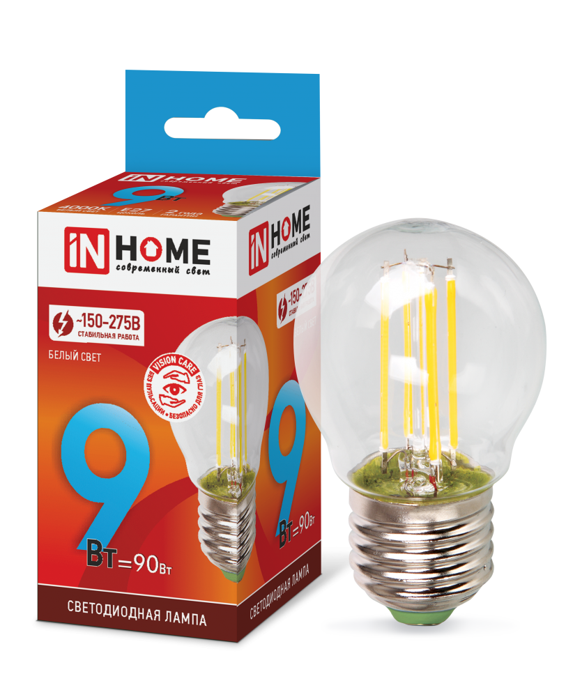 Лампа светодиодная LED-ШАР-deco 7Вт 230В Е27 4000К 810Лм прозрачная IN HOME 4690612016337 в Улан-Удэ