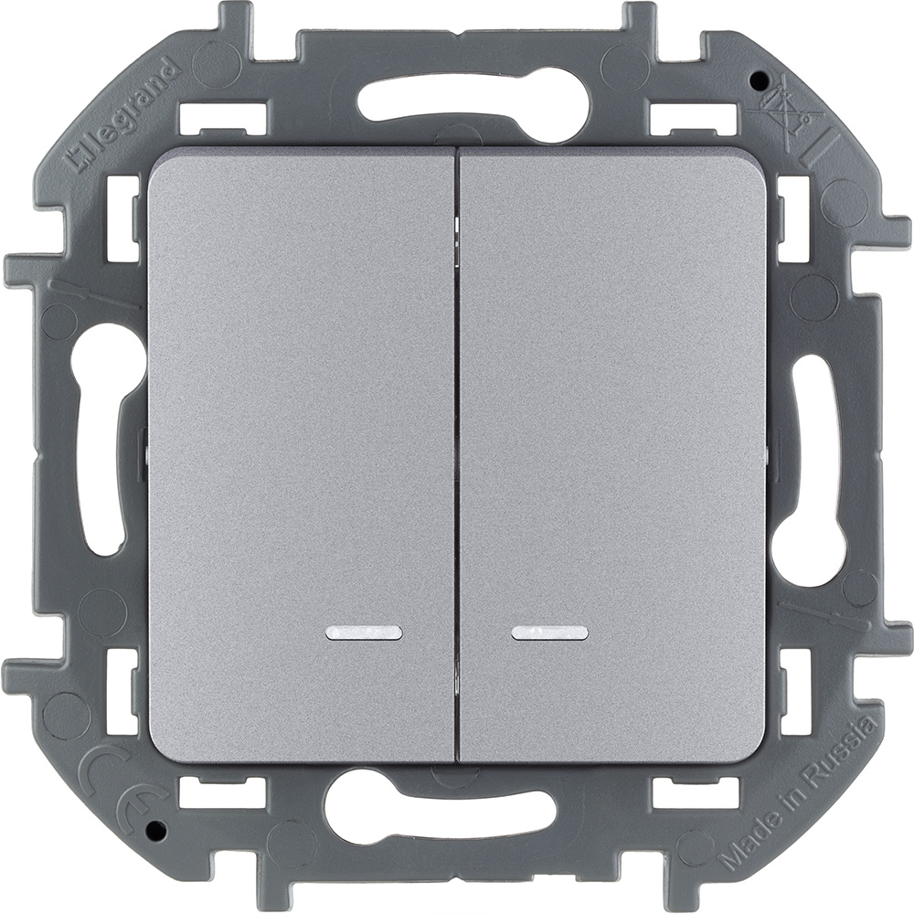 Выключатель двухклавишный с подсветкой/индикацией 10 AX - 250 В Алюминий Legrand INSPIRIA в Улан-Удэ